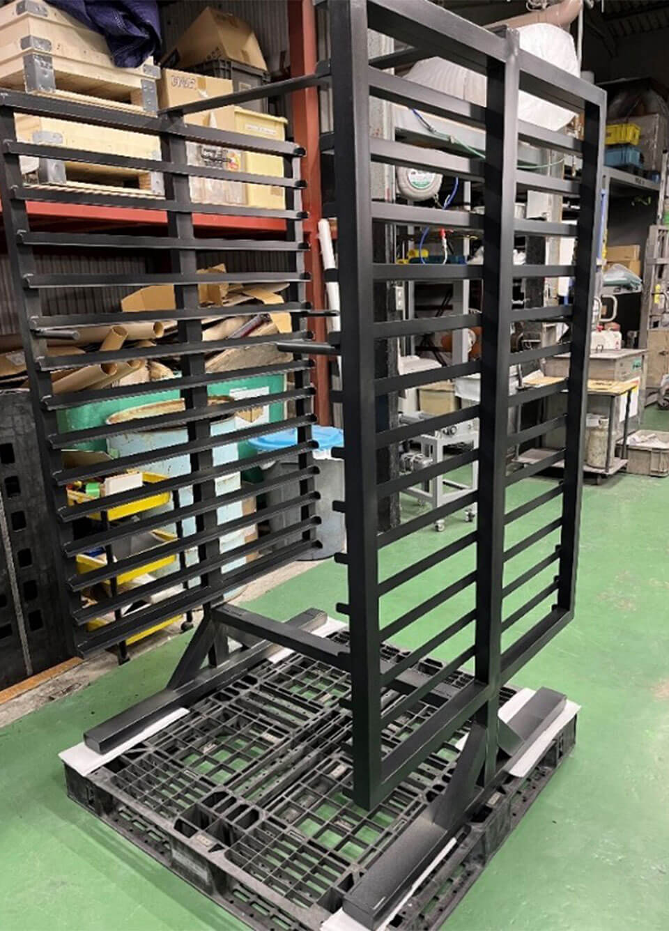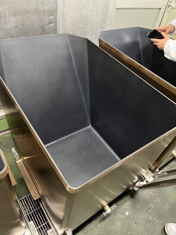 ステンレスやチタン製のワゴン、ホッパー、撹拌機、シューター、スモークハンガーなど、あらゆる基材への適用が可能です。