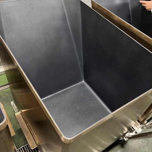 ステンレスやチタン製のワゴン、ホッパー、撹拌機、シューター、スモークハンガーなど、あらゆる基材への適用が可能です。